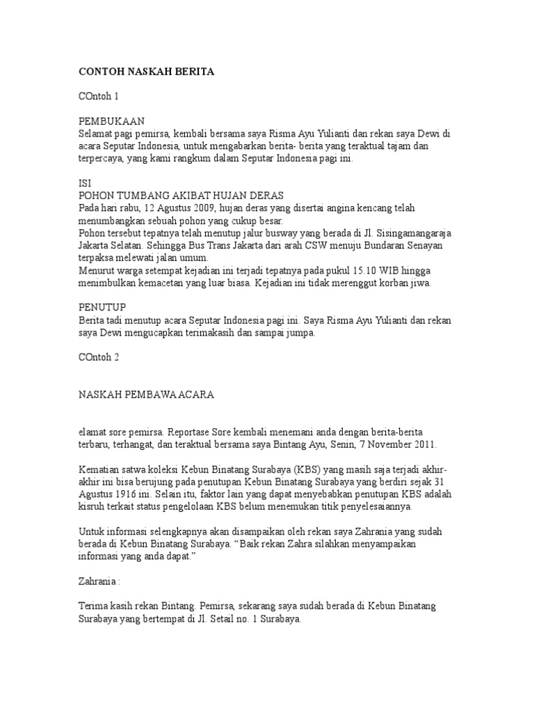 Contoh Naskah Berita Tv One Contoh Resource
