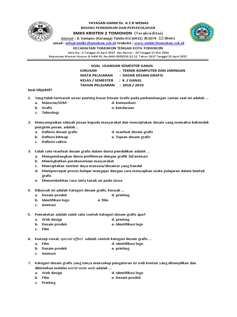 November 08 2017 source. Contoh Soal Desain Grafis Kelas 10 Semester 2 Guru Ilmu Sosial Soal Pts Desain Grafis Percetakan Kelas Xi Mm Docx Pilihlah. Soal dalam bentuk pilihan ganda 40 butir dan 5 soal essay.