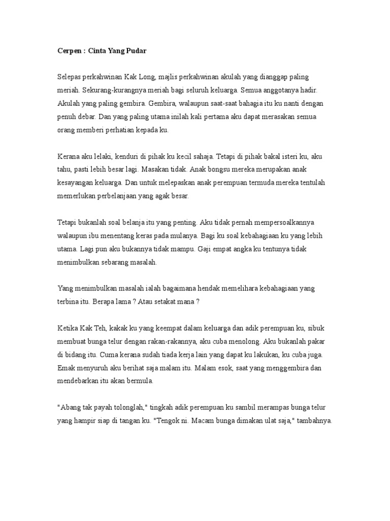 Untuk anak yang lebih besar minta mereka membacakan cerita dengan keras agar bisa di dengar oleh seluruh keluarga. Antologi cerpen Matahari di Nusantara memberikan gambaran tentang pentingnya kedudukan keluarga sebagai institusi pendidikan anak penanaman adat dan tradisi pengembangan diri di masyarakat. Cerpen keluarga sedih tak diinginkan Menjadi seseorang yang tak diinginkan bukanlah sesuatu yang Nurman impikan.