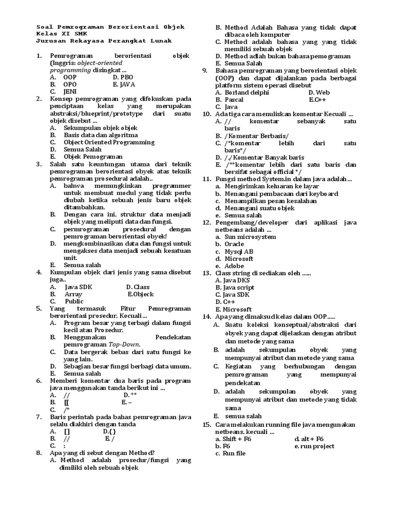 Soal Uas Pemrograman Berorientasi Objek Kelas 12 Smk Semester Ganjil