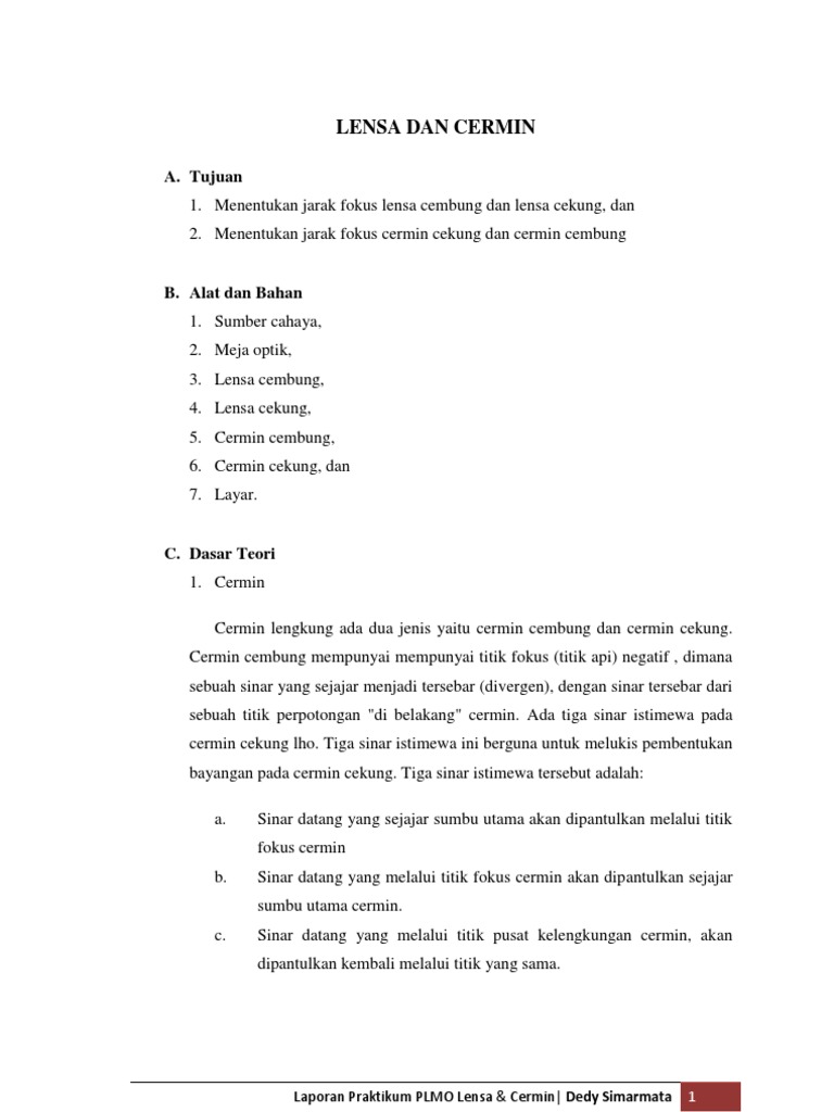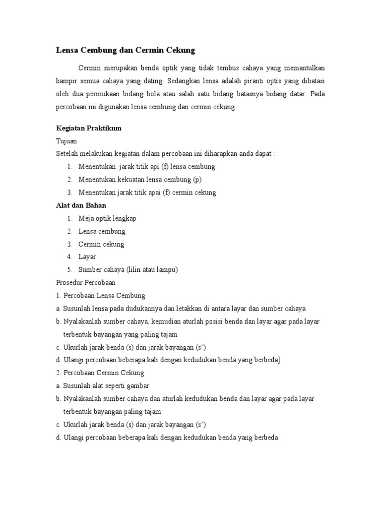 Contoh Laporan Praktikum Lensa Cembung Dan Lensa Cekung Kumpulan Contoh Laporan