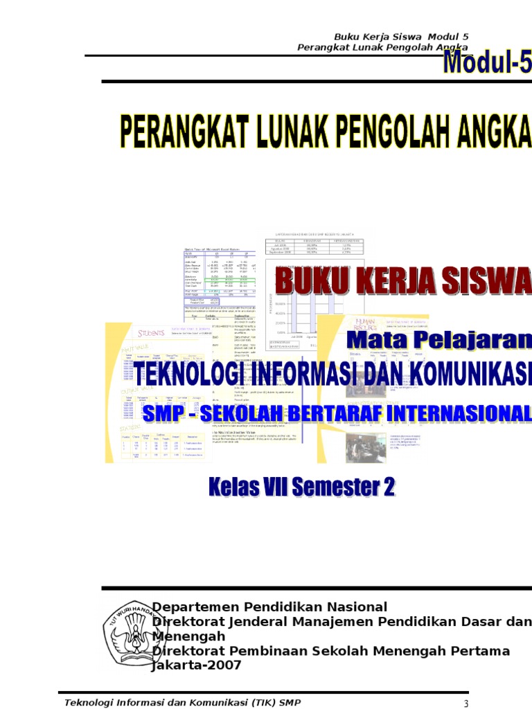 Berikut materi pelajaran bidang studi TIK Teknologi Informasi dan Komunikasi untuk jenjang SMPMTs kelas IX Sembilan yang menggunakan Kurikulum KTSP 2006 mulai dari semester 1 ganjil sd. Materi Teknologi Informasih Teknologi informasi dan komunikasi TIK salah satu pelajaran yang berkaitan dengan penanganan informasi karena berhubungan dengan pengumpulan penyimpanan dat dan mengenal alat alat kumputer maka kami akan memberikan contoh soal kelas 7 semester 1 dan 2. Modul TIK SMP Kelas 7 Semester 2.