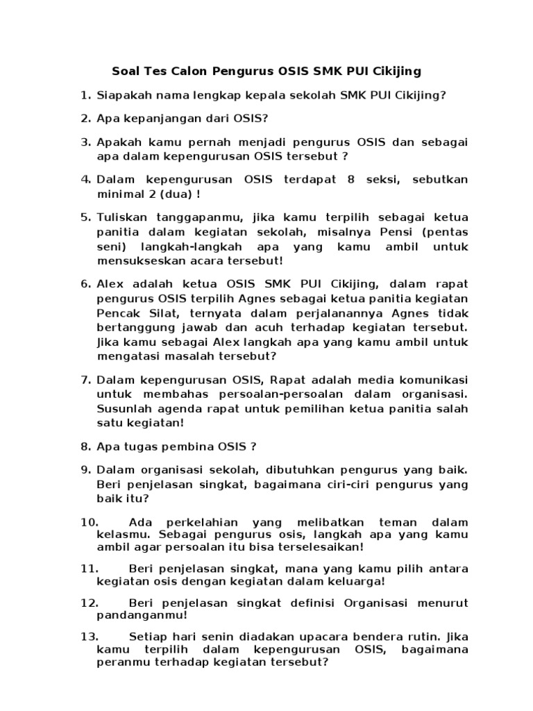 Soal Tes Calon Pengurus Osis Sman 3 Jember