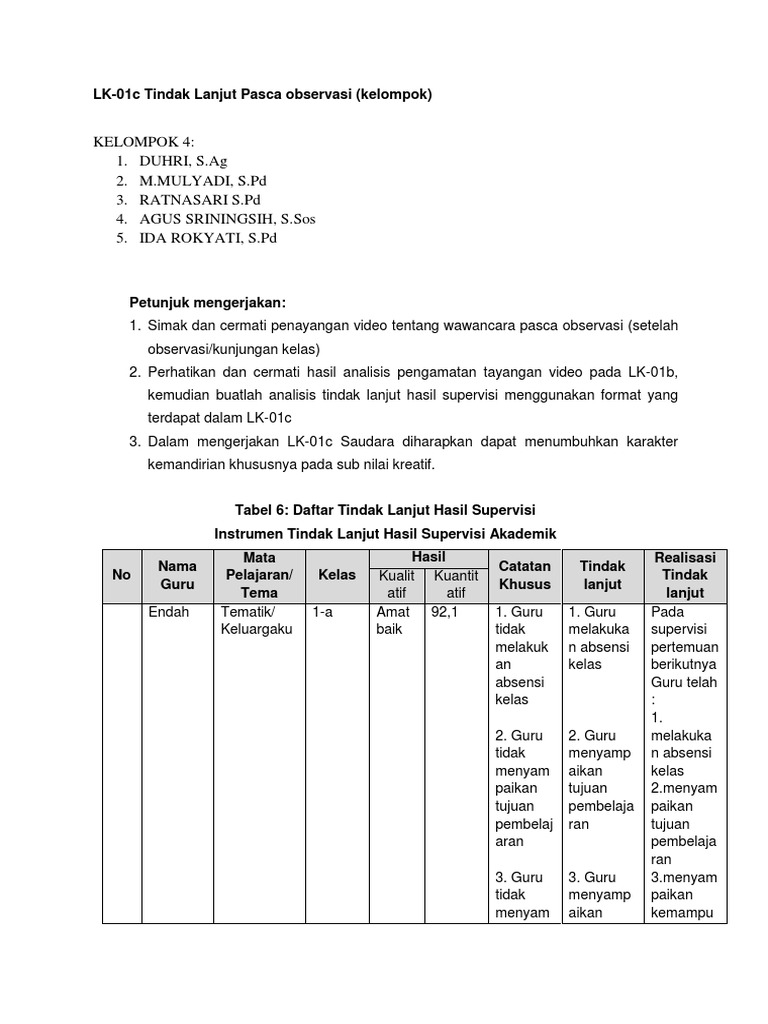 Dokumen Hasil Analisis Dan Tindak Lanjut Supervisi Pembelajaran Cara Lif Co Id