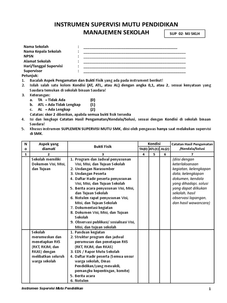 Contoh Instrumen Supervisi Kepala Sekolah Kepala Sekolah Sekolah Instrumen