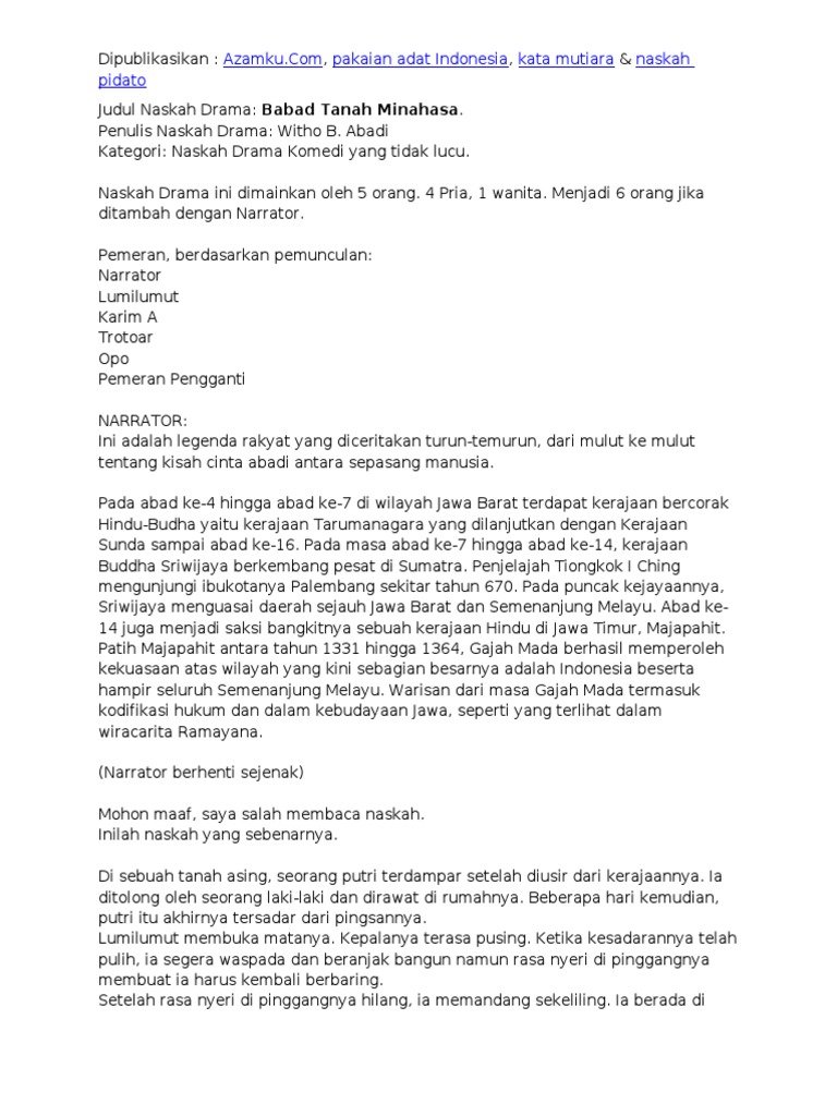 Idocpub 15 Contoh Naskah Drama Singkat. Dan merujuk pada cerita rakyat tentunya banyak sekali judul yang bisa diambil dalam penyusunan sebuah naskah drama cerita rakyat.