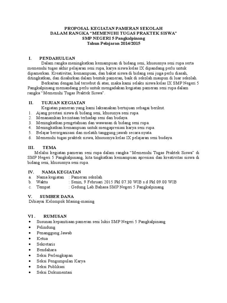 Doc Contoh Proposal Kegiatan Pameran Seni Rupa Di Sekolah Docx Zakaria Ahmad Academia Edu